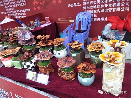 龙海市九湖食用菌研究所在本届展销会上展销灵芝活体盆景,引来众多游客驻足观看,争先购买,人气特旺。